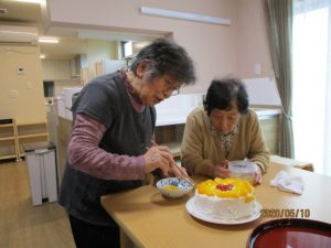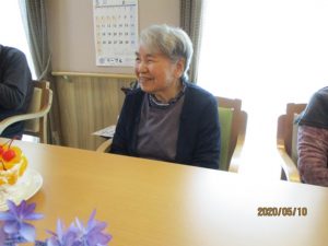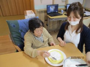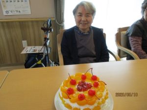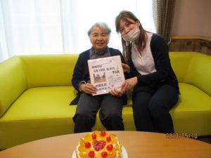今日がお誕生日のご利用者様を、色紙と手作りケーキでお祝いしました!