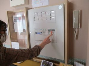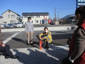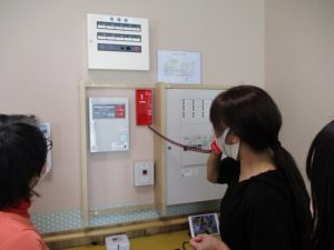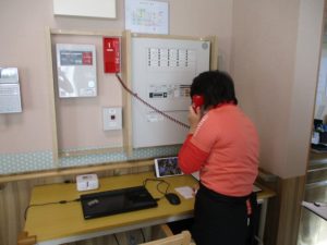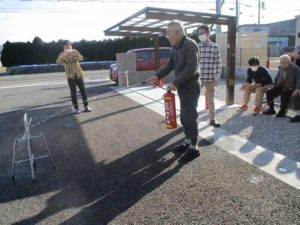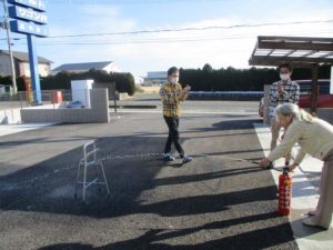 今回は通報装置を使った通報訓練、火災想定の避難訓練、消火器訓練を行いました!