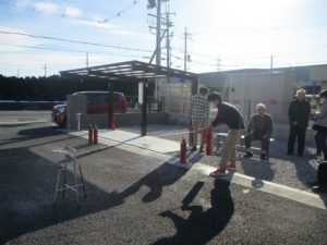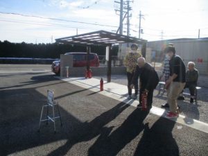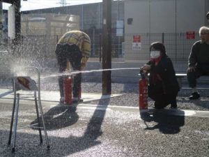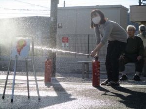 水消火器を実際に使用して利用者様、そして職員も訓練しました。