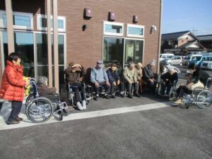 お外で、日向ぼっこで一日の始まりでした。そして、…