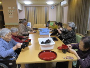 夕食の後は、皆さんでお膳拭き、お椀拭きをして下さいました。