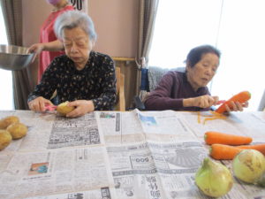 昼食の下ごしらえのご様子です♪ みなさん手際がいいですね!
