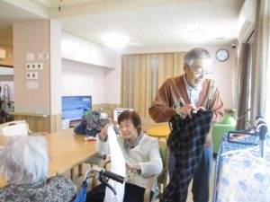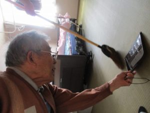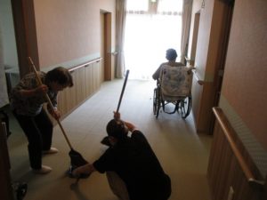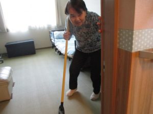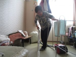 朝、廊下の掃除、衣類干しや手すり拭きをして下さる。