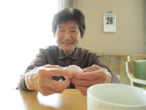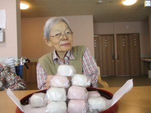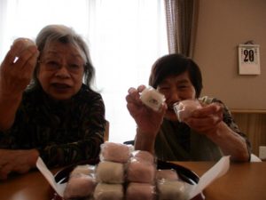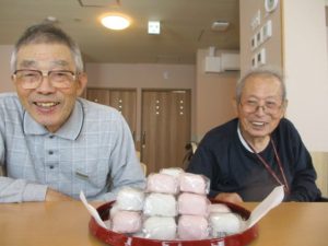 敬老の日には紅白饅頭を皆さんで頂きました(*^^*)