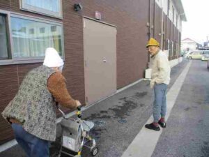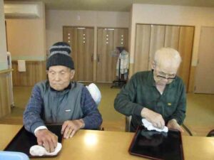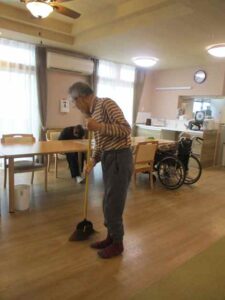 掃除をしている。