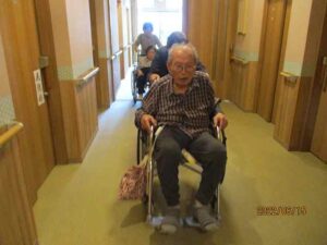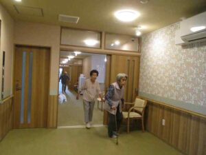 雨の日ですから外に出られなくて廊下に運動していますね。