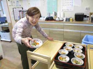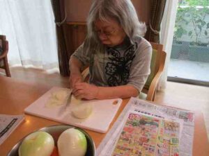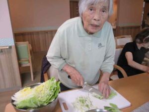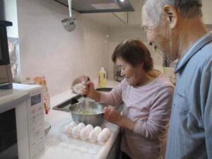 食事のメニューを伝え、調理開始しました。「食べるのは唯一の楽しみや」と皆様張り切って手伝ってくれてありがとうございます。
