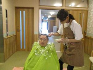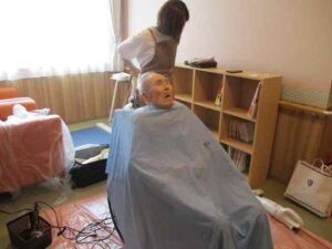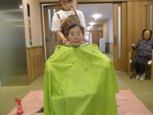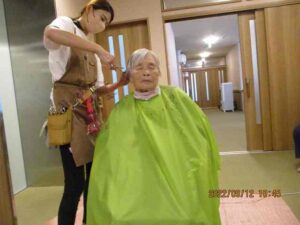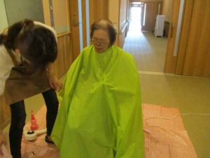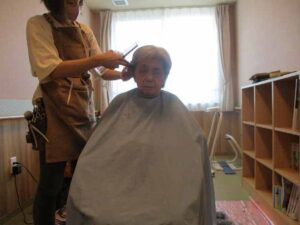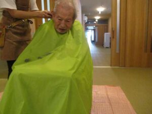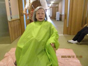 本日待ちに待った散髪がありました。皆様髪が伸びており「髪を切るだけでスッキリするし肩が軽いわ」と笑顔みられました。