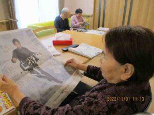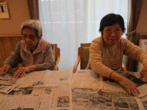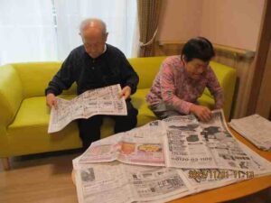新聞折りも手伝ってくださいました。途中新聞を読んだりしていましたが沢山新聞を折って手も真っ黒にされていました。