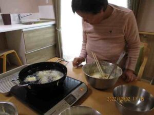皆様は一緒に天ぷらを作りましょう。一日楽しみでした。