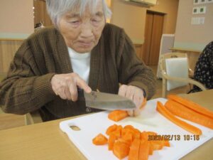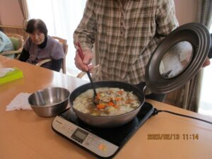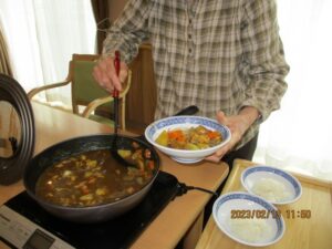 今日はカレーライス作りをしましたが「カレーは嬉しいな」「早く食べたい」と香りがすると皆様お腹をすかしていました。本日もお手伝い有難うございます。