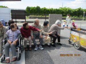 台風も温帯低気圧になり本日は晴れました。天候がいいと気持ちまで晴れやかになりますね。久々の散歩も皆様「やっぱり外の空気はいいわ」と喜んでおられました。