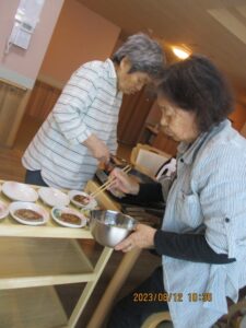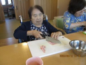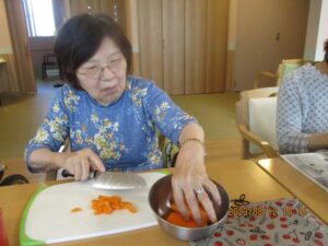 みなさん家事を手伝ってくださいます。今は女性の利用者様が多いので、特に調理の時は手がたくさんあって助かっています。