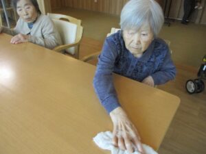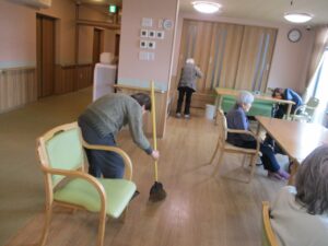 廊下を歩かれた後、お掃除やご飯の準備など積極的に参加されていました♪