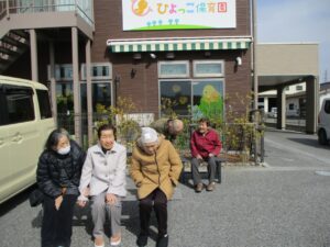 温かい恰好をして外へ出て日向ぼっこをしました♪