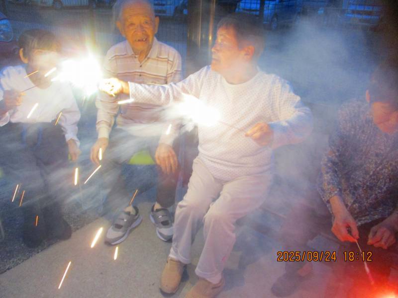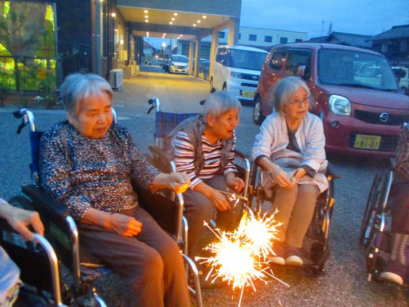 今日は皆様で一緒に花火をしました。とっても楽しかった。