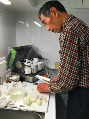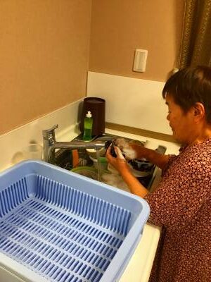 今日も調理や洗い物、食後のお膳拭きなど