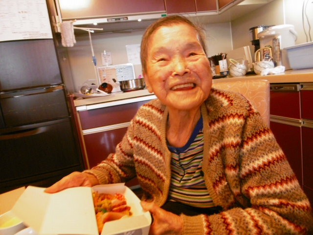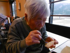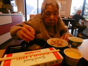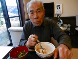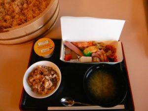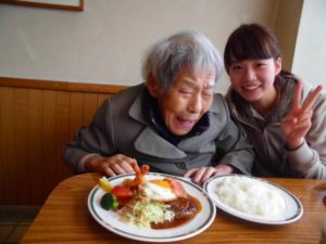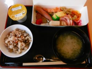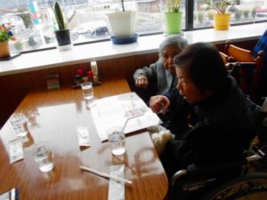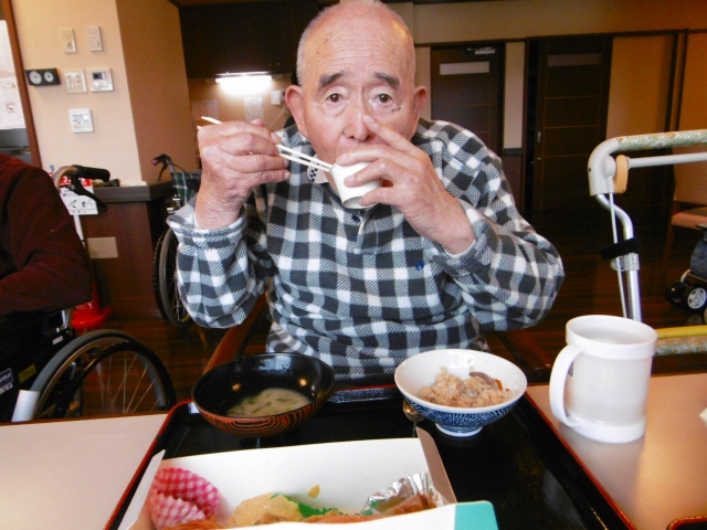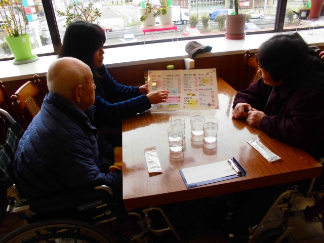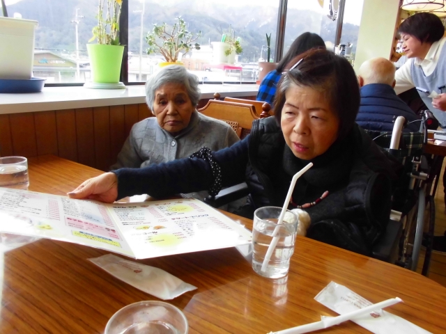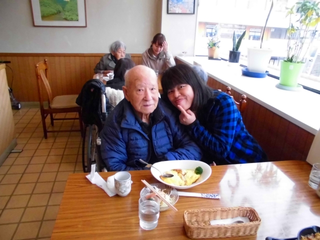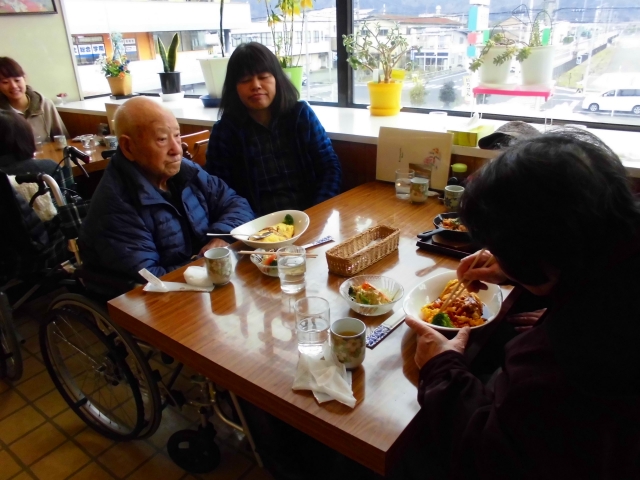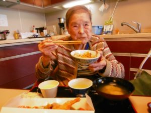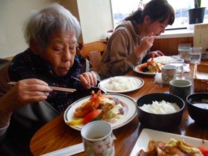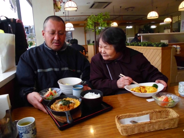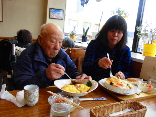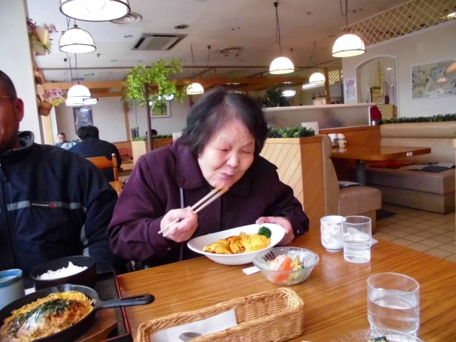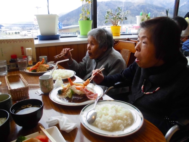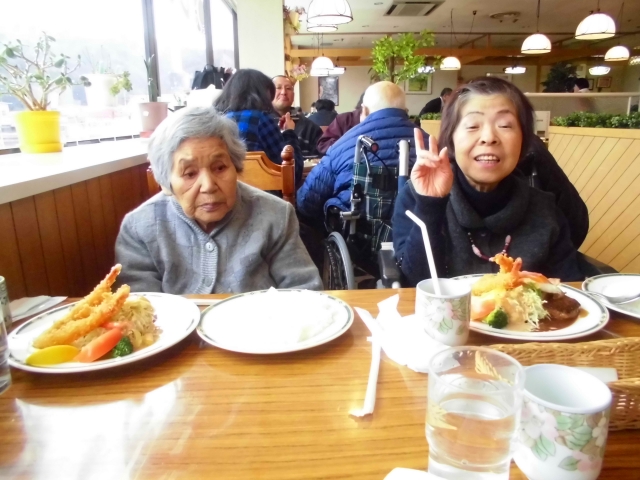 エビフライやオムライスおいしそうな食事を楽しまれています。