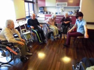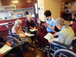 先日、言語聴覚士とともに体操をし、その後は歌も唄いました。