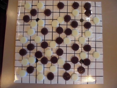 今回、黒と白の羊羹で碁盤を作ってみました。