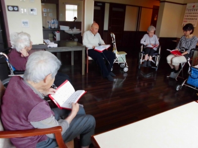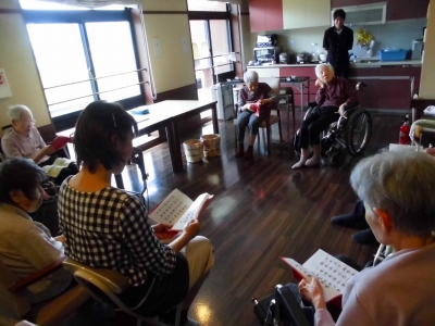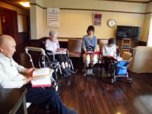 昼食前に歌を唄い「おつとめ」を行いました。