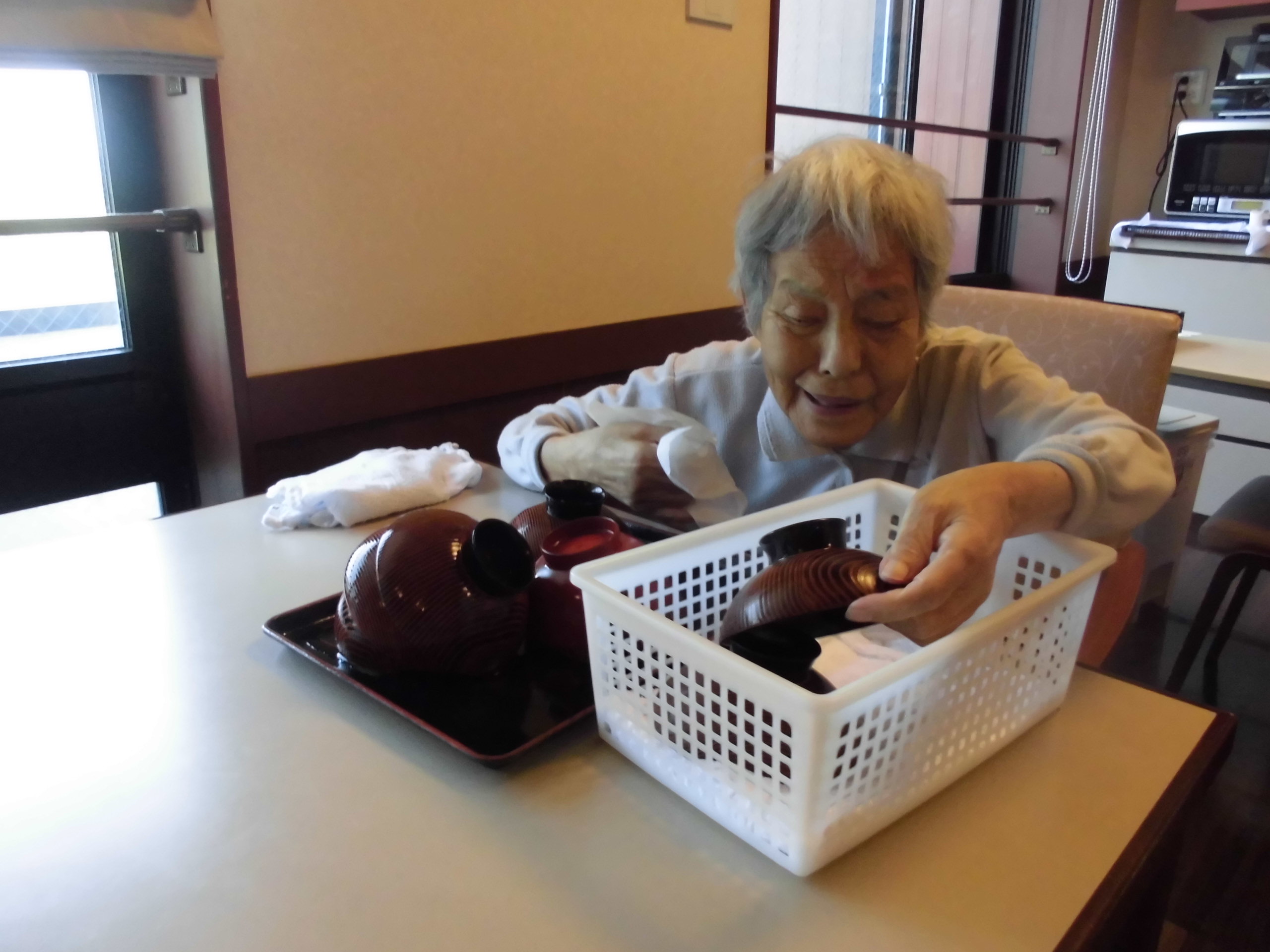 洗った食器を拭いてくださっています。