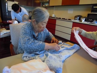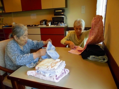 今日は入居者様が洗濯物たたみを手伝って下さりました。