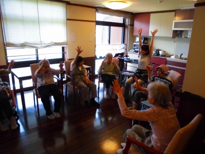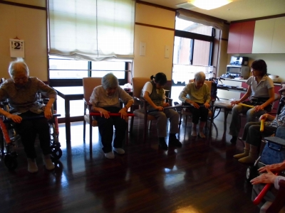 皆で集まって、棒体操と歌を唄いました。