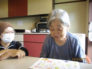 「おいしそうやな~」とお品書きを読みながら職員と会話が弾みました!