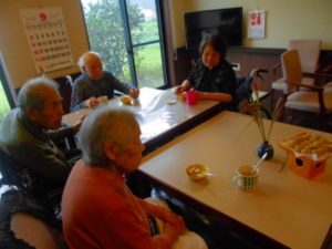 ちょうど今日がお誕生日のご利用者様のお誕生日会も兼ねて、お団子を皆で頂きました。