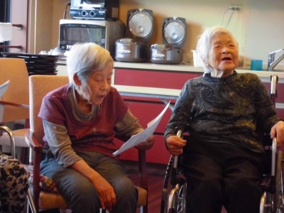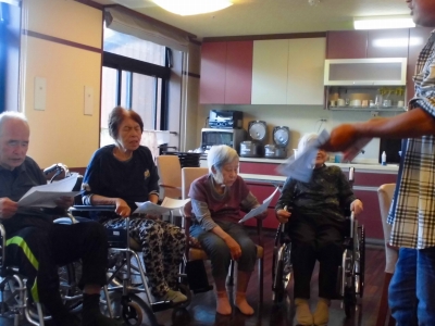 ”里の秋”、”もみじ”、”旅愁”、”赤とんぼ”などなど、季節の歌を皆で合唱しました。