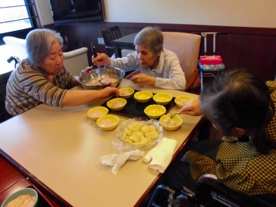 ☆おやつ作りはフルーチェにフルーツをトッピング(=´▽`)ゞ
