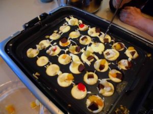 バナナ・チョコレート・フルーツミックスを入れての鈴カステラを作りました。