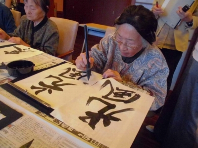 今日は毎月恒例のまんてん書道クラブの日でした。