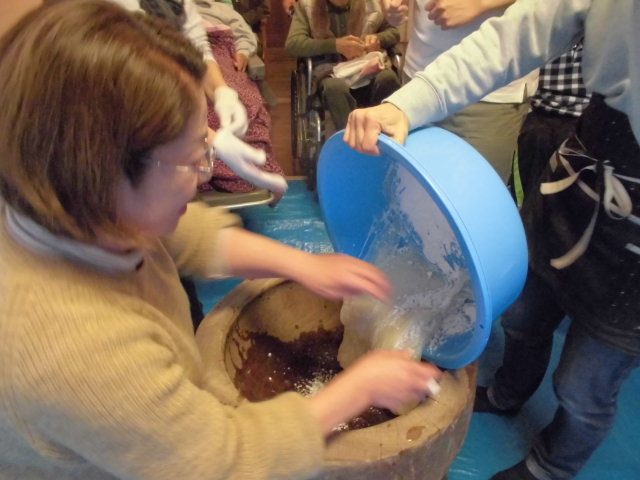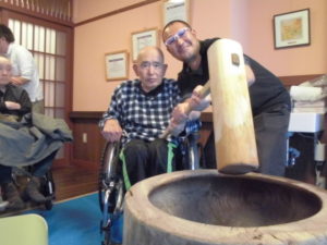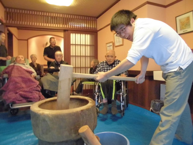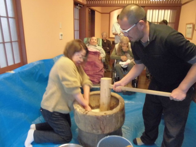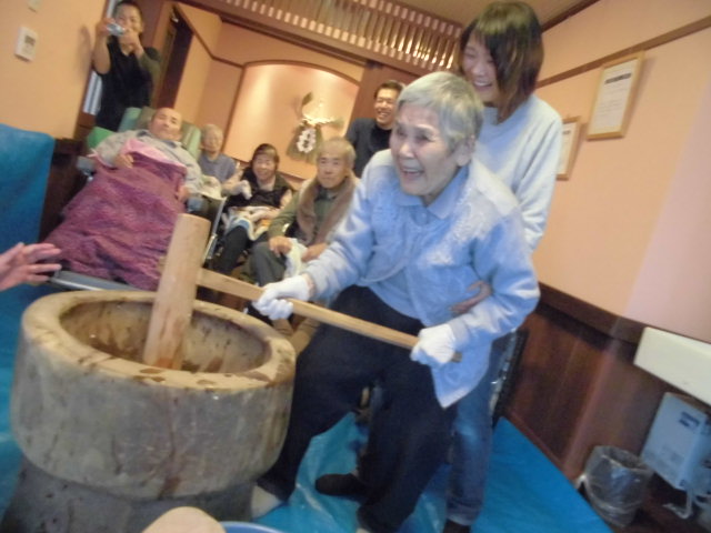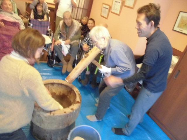 一生懸命お餅をついて下さってました。楽しそうな風景ですね!