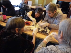 つきたてのお餅を、手分けして丸めて行きます。皆様お上手~!!!