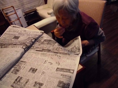 朝は新聞に目を通され、社会事情のチェックです。