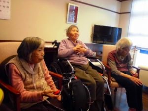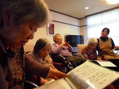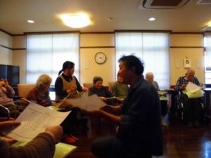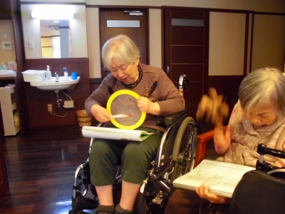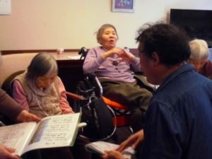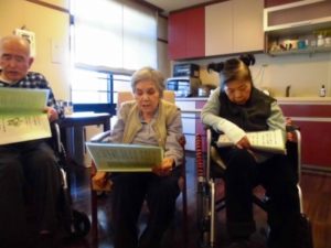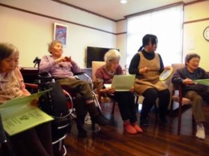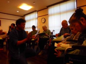 隣のグループホームの入居者様と一緒に歌を唄いました。
