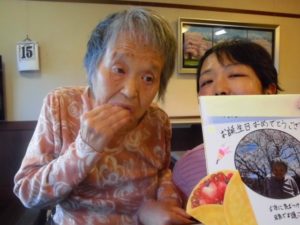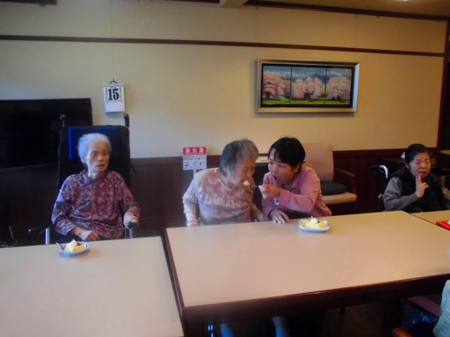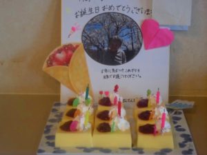 今日は入居者さまの誕生日でみんなでお祝いしまいた。
