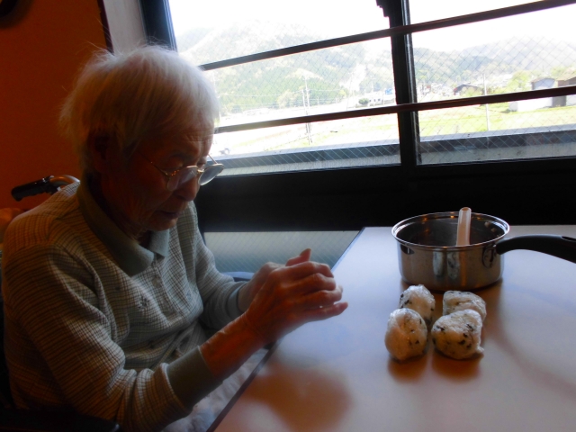 お昼の余ったご飯で、おにぎりを^^