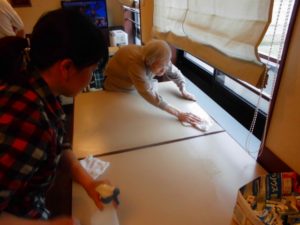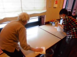 食事の前後にテーブルを拭いていただいています。