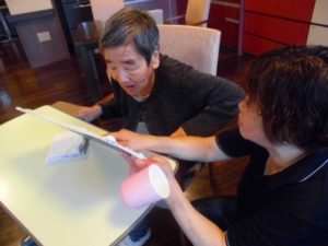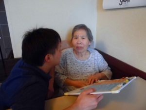 コーヒーにしようか、紅茶にしようか、メニュー表を見て決めておられます。