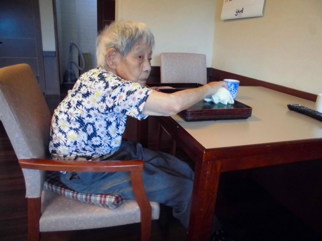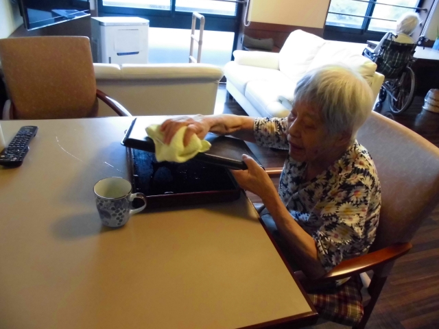 お膳拭きを手伝ってくださっています。