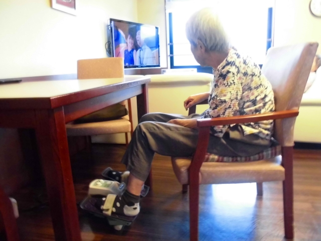 その後は、テレビを観ながら足を動かす機械を使って運動されています。