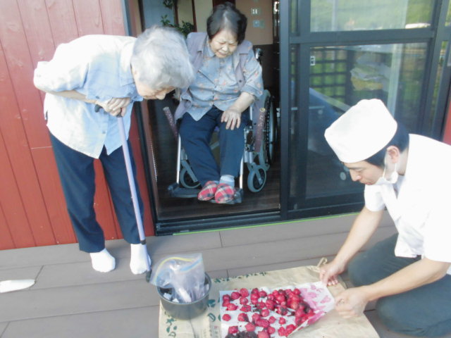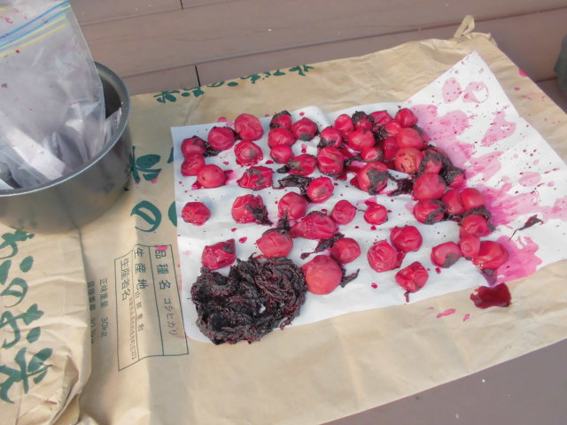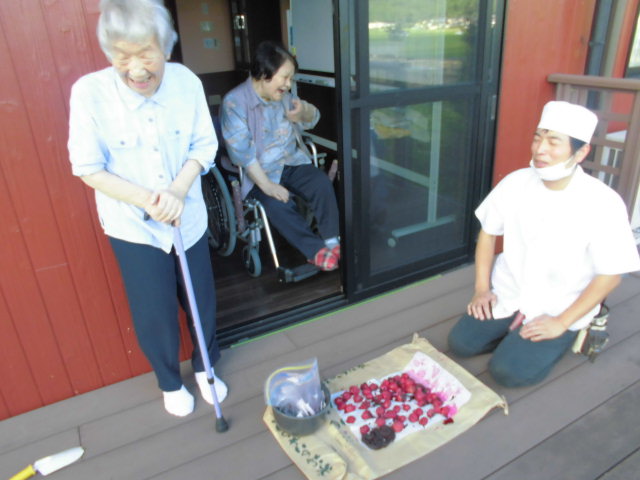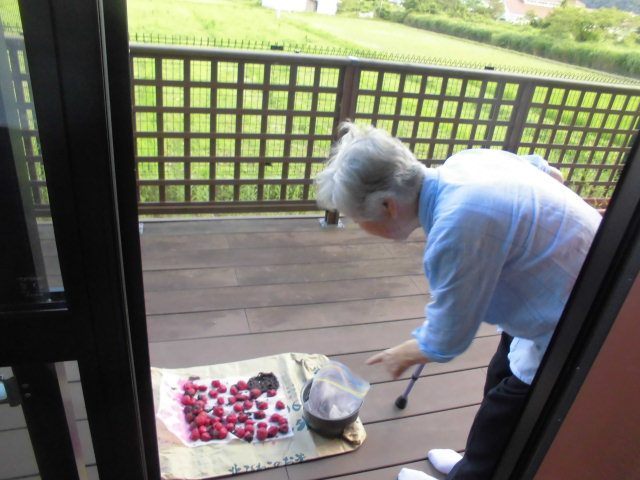 天気が良く梅干をつけたものを日中に干しておられます。その様子を皆さん見学され、『昔は私もよくしたな』と懐かしんでおられました(〃^ω^)