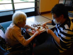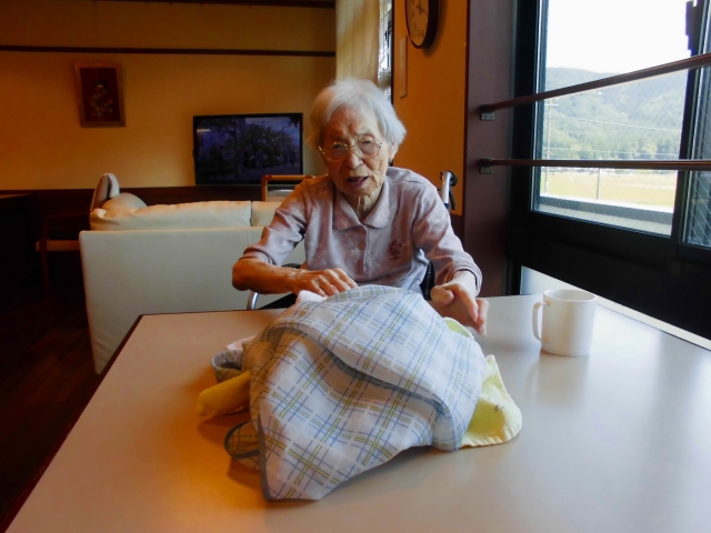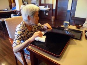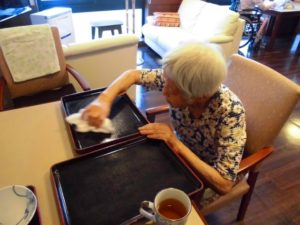お膳を拭いたり、洗濯物をたたんだり