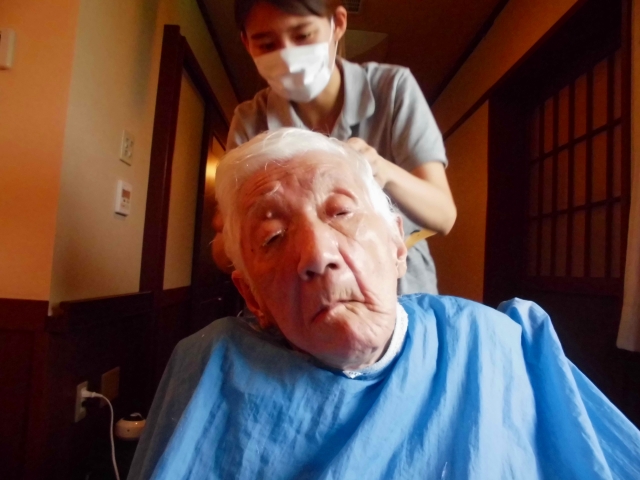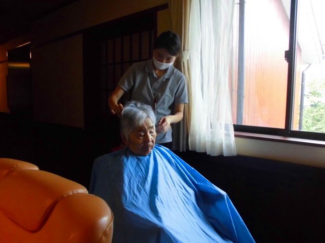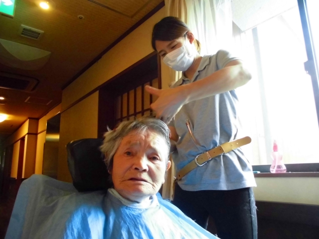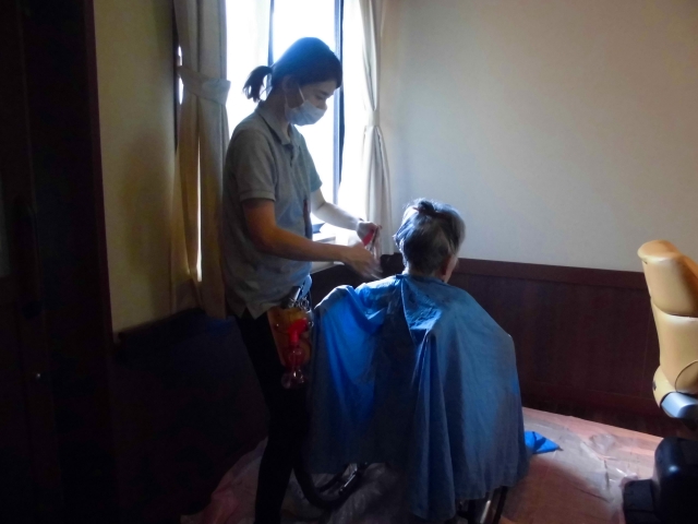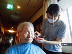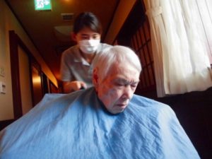 本日、散髪の業者様が来所して頂き、入居者様の散髪を行って頂きました。