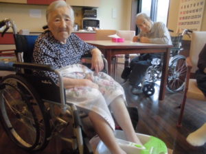 リビングで足を温める足浴を行いました。『足が温かくありラクになった』と素敵な笑顔を見せて下さっています。