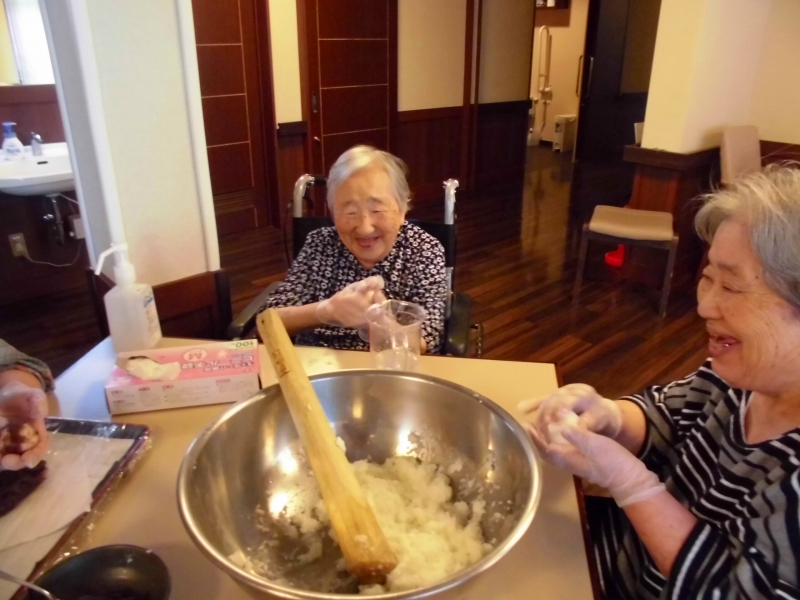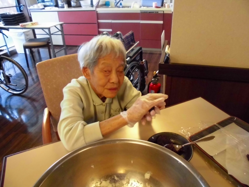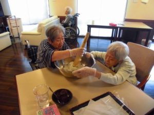 今日は入居者様と一緒におやつ作りをしました。^ω^)