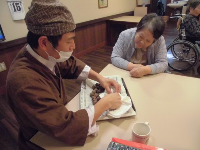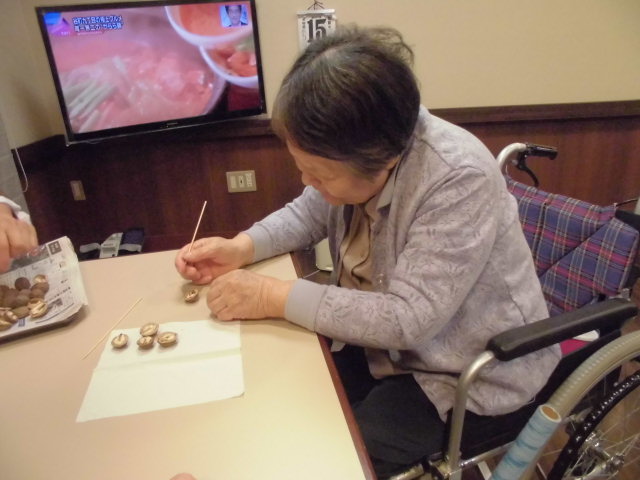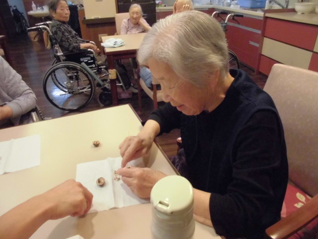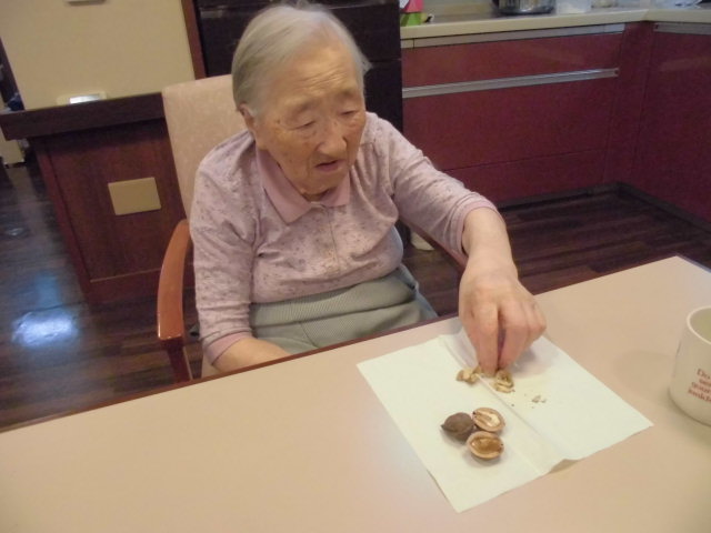 リビングで『胡桃むき』を皆様に手伝って頂きました。とても細かなお仕事でしたが、皆様上手に剥いて頂けています。有難う御座います。